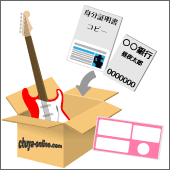 楽器発送の際、下記の必要書類を必ずご同梱ください。運送途中の書類紛失(段ボールの隙間等からの落下)を防ぐため必要書類は封筒などに入れ、テープ等で段ボール内部に固定するか、ギターケースのポケットなどに入れておく事をお勧めします。