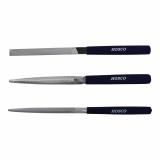 Music Nomadの特許出願中のナットファイルは、革新的なダイヤモンドコーティングと弦に沿うように丸い形をした刃のデザインにより、スムーズで正確なカットを実現。一般的な歯付きヤスリのように横滑りすることなく、溝のカットと仕上げを同時に行います。刃の厚みが十分にあるため、曲がりにくく、高い耐久性を実現。工業用の均一なダイヤモンドコーティングは、ナイロン、骨、グラファイト、さらには真鍮や亜鉛などの金属など、あらゆるナットやサドルの素材をカット可能。人間工学に基づいて設計されたハンドルは、快適な操作性を実現しています。また、繊細な作業の際はハンドルから刃を取り外して使用することもできます。サイズは