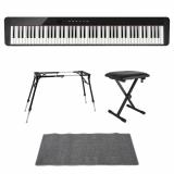 シンプルなデザインに30種類の高品位サウンド、 Bluetoothオーディオ、大迫力のスピーカーなど、ピアノをより楽しむための機能も充実した電子ピアノ「KORG C1 AIR」に、4本足で高さを自由に調整出来る高低自在ピアノ椅子「KORG PC-300WH」、キズ防止のマットをお付けしたセット商品です。