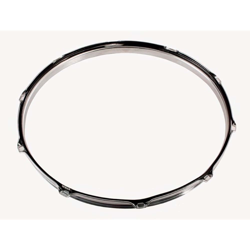 ●レゾナンス・リングを装着すると、フープを押さえる力がより均等になります。たとえば10インチ、6ホールのタムで1本テンションボルトを段々緩めて行き、最後にボルト1本を外してもヘッドに”しわ”が出来る事なく(当初のピッチよりやや下がりますが)充分音として発せられます。フープ全体で締め付けていると申せます。