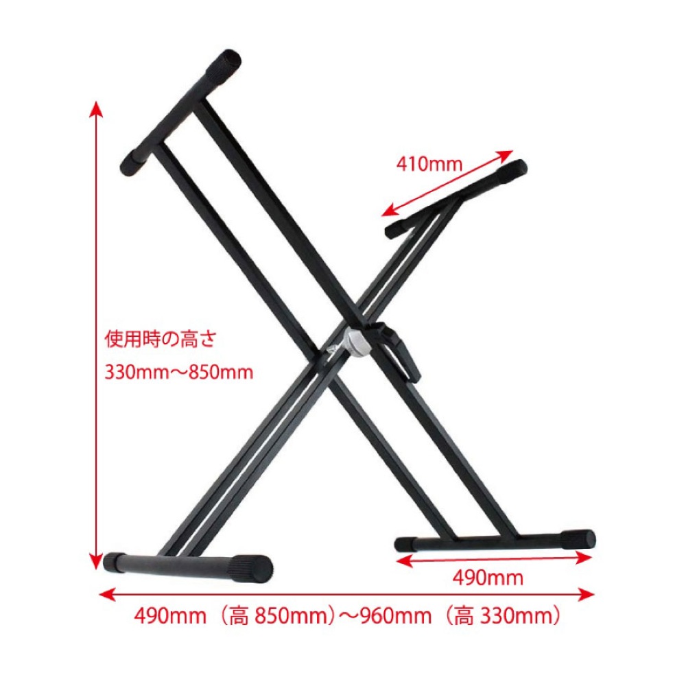 シンプルなX型キーボードスタンド。持ち運びにも便利なサイズです。