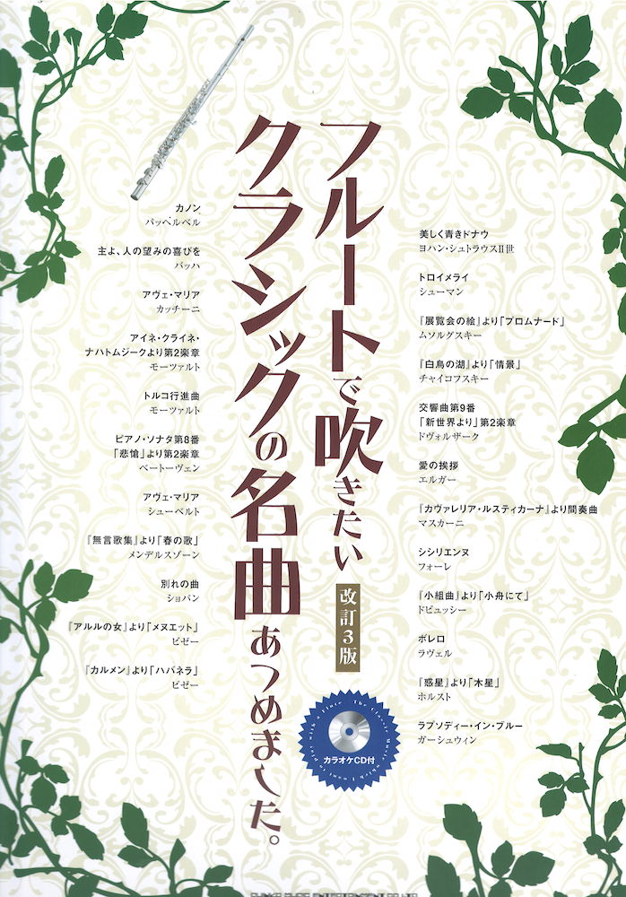 フルート「あつめました。」シリーズより、クラシック編がリニューアルしました! フルートの美しい音色で奏でたい名曲を22曲掲載。演奏会やパーティーなど、様々な場面でご活用いただけるカラオケCD付きです。
