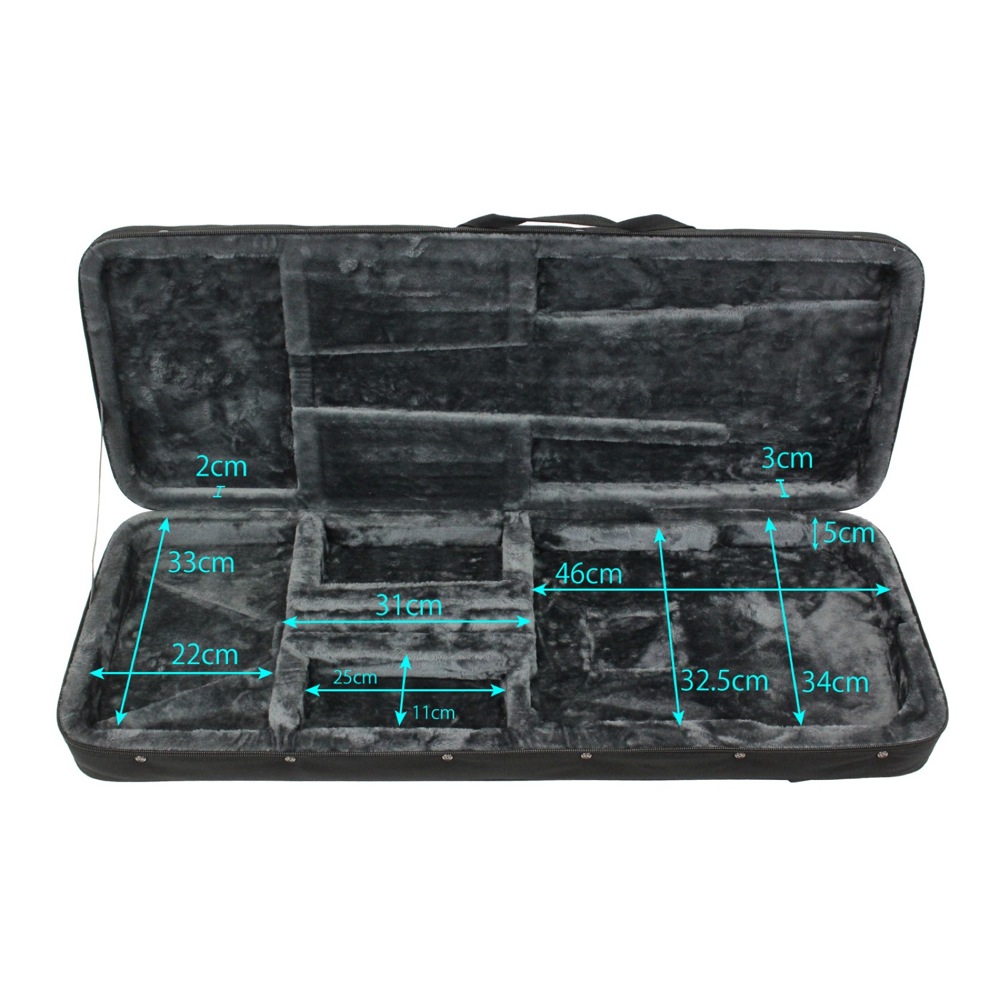STタイプ、TLタイプといったエレキギターの定番シェイプのほとんどが収納可能。ケース内部をボディの形に成型せず、様々なボディシェイプに対応できるように汎用性の高いデザインを採用しました。