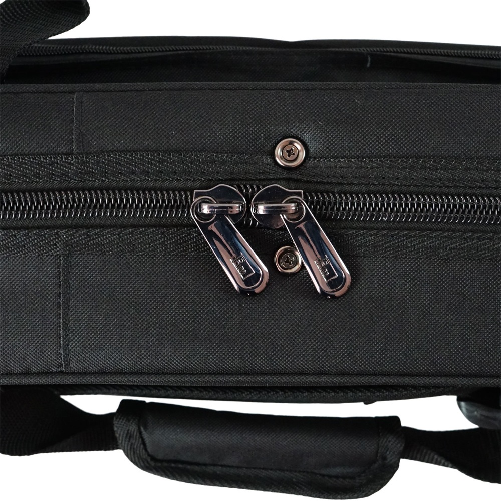 ケースフロントにはA4サイズの楽譜やファイルを収納可能なアクセサリーポケットを装備。さらに、アクセサリーポケットの外側にもメッシュのオープンポケットを配置し、ファスナーの開閉をする事なくメモやプリントが収納できるのもポイントです。