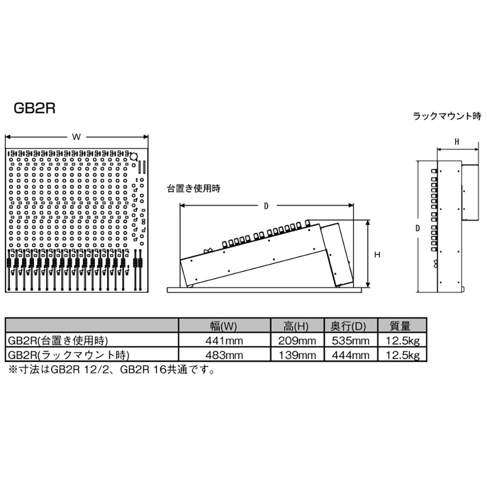 ・12モノラル/2ステレオ/2ステレオリターン入力の「GB2R 12/2」と、16モノラル/2ステレオリターンの「GB2R 16」の2モデルを用意。