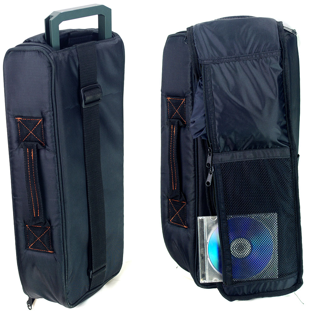 ボードの端にあるハンドルを持ち、片手で軽々と移動させることが可能です。バッグにはメッシュポケットやポケットが多く、ショルダーストラップは徒歩での移動に便利です。専用のレインカバーが付属しておりますので、雨の日でも安心!