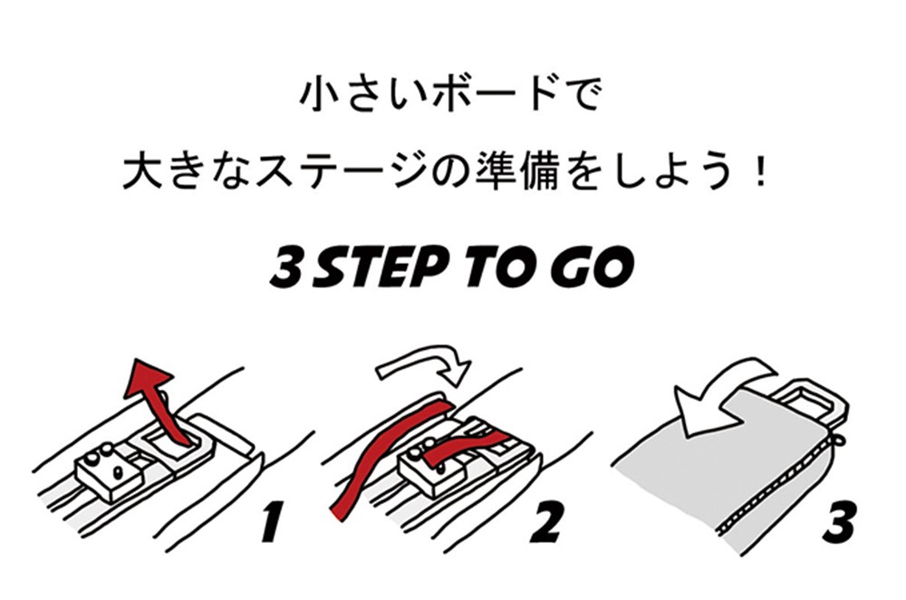 機器とペダルボードとをマジックテープで固定するだけなので、エレキギター・ベースプレイヤーはもちろん、電子機器を操作するプレイヤーなら誰にでも対応し、ステージ上での面倒な配線を省くことが出来ます!