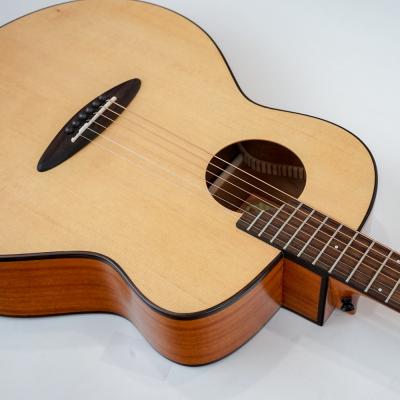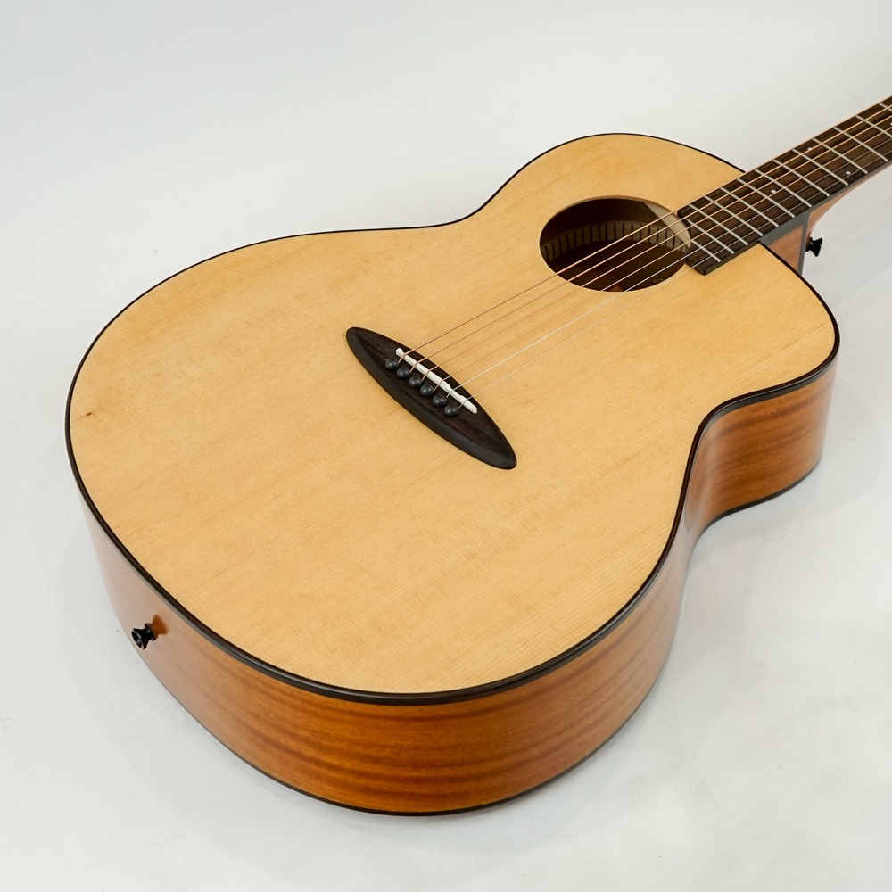 サイド・バック材はサウンドの安定したラミネートマホガニー、トップ材は選び抜かれた単板ソリッドスプルースを使用しバランスに優れたサウンドが、圧倒的なコードストロークから厚みのあるフィンガースタイルまで、多くのプレイヤーにマッチします。