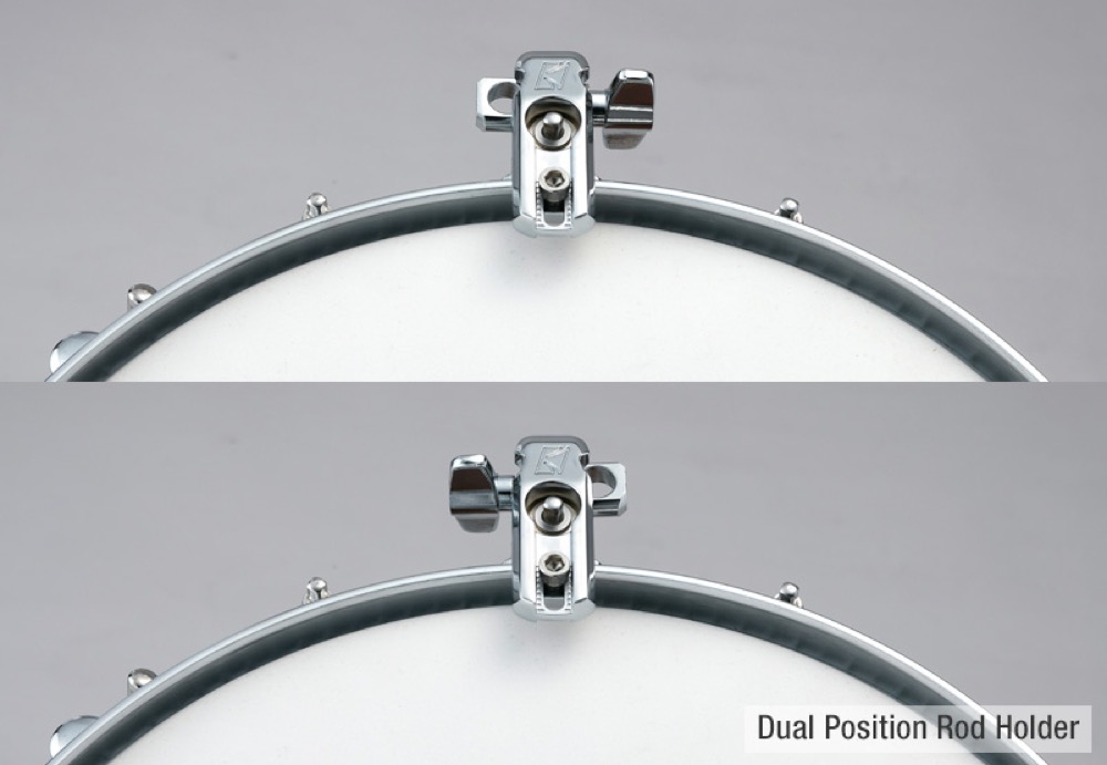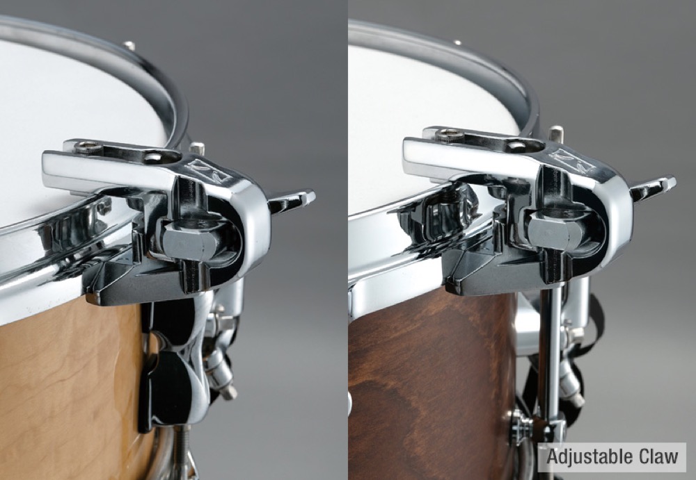 フープへの取付け方法は、上面にあるボルトをドラムキーで締めるだけと非常にシンプル。別売りのドラムハンマーDH7や5mm六角レンチ等を用いてフープに固定する爪の位置を調整することで、様々な厚み、形状のフープに取り付けることが可能です。