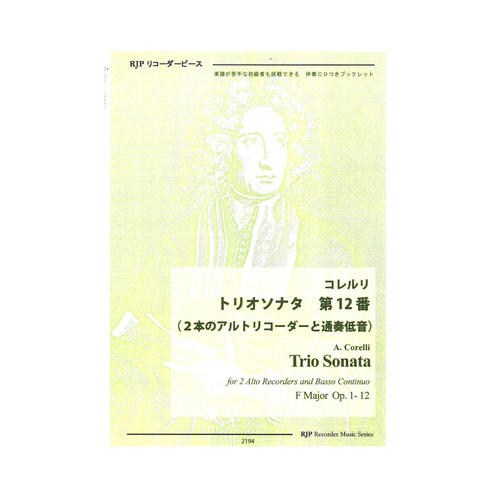 2194 コレルリ トリオソナタ 第12番 2本のアルトリコーダーと通奏低音【楽譜】