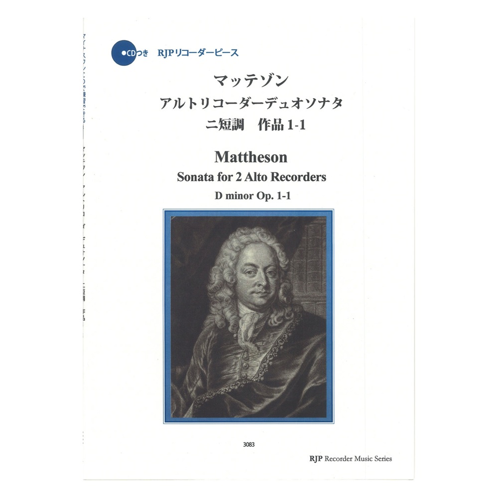 商品名 3083 J.マッテゾン アルトリコーダーデュオソナタ ニ短調 作品1-1 CDつきブックレット リコーダーピース リコーダーJP