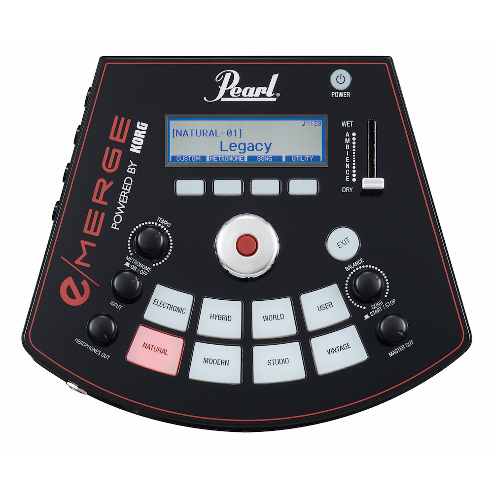 Pearlのさまざまなラインナップのアコースティック・ドラムの音色とKORGのエレクトロニックやワールドパーカッションの音色を組み合わせたキットは、ドラマーのイマジネーションのために、あえて音楽ジャンルではなく音色のイメージで分類され、カテゴリー・ボタンやダイヤルで、迷わずに選ぶことができます。アコースティック・ドラムの音色は今回新たに、MusicCityと呼ばれる米国ナッシュヴィルで録音されました。使われたのは、超一流のインターナショナル・アーティストご用達のレコーディングスタジオで、その臨場感は世界中を探しても、その広大な部屋でしか録れないものでした。選ばれたアコースティック・ドラムは、PearlのフラッグシップであるReferenceシリーズやReferencePUREシリーズから、ヴィンテージサウンドを彷彿とさせるシングルヘッドのWOOD-FIBERGLASSシリーズやアクリルシェルのCRYSTALBEATシリーズまで、そのサウンドは名だたるPearlアーティストの演奏で親しみがあるものでしょう。スネアドラムもそれぞれの製品の開発コンセプトを完全に理解した上で、ベストのヘッド、ミュート、チューニングとともに、"生音"の状態から緻密な音作りが施されました。これはPearlがアコースティック・ドラムを自社開発・製造している強みです。