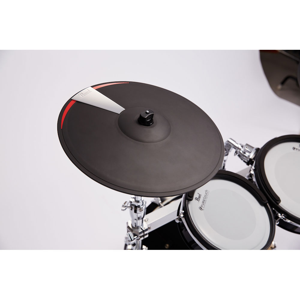 PUREtouchエレクトロニック・シンバルは、18インチ・ライド、15インチ・クラッシュ、14インチ・ハイ・ハットから構成され、ここでもサイズの妥協は全くありません。打感に関してもドラマーにとっての快適さを実現するため、特殊な多層構造が採用されています。ライド・シンバルは、エッジ部分とボウ部分を叩いた時の周波数を検知し、新開発のアルゴリズムを使って、打点によって無段階に音色を変えるシステムが採用されています。