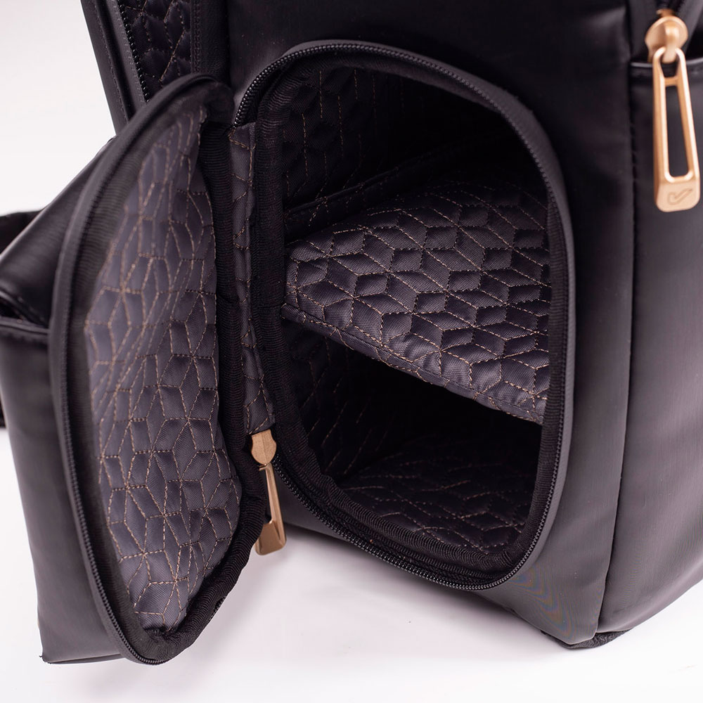 取り外しが可能な柔らかい棚で仕切られた内部は、棚を外せば大きなスペースとして、棚を付けると上部と側面からアクセス出来る区切られたスペースにより、細かい物を分別して収納するのに便利です。