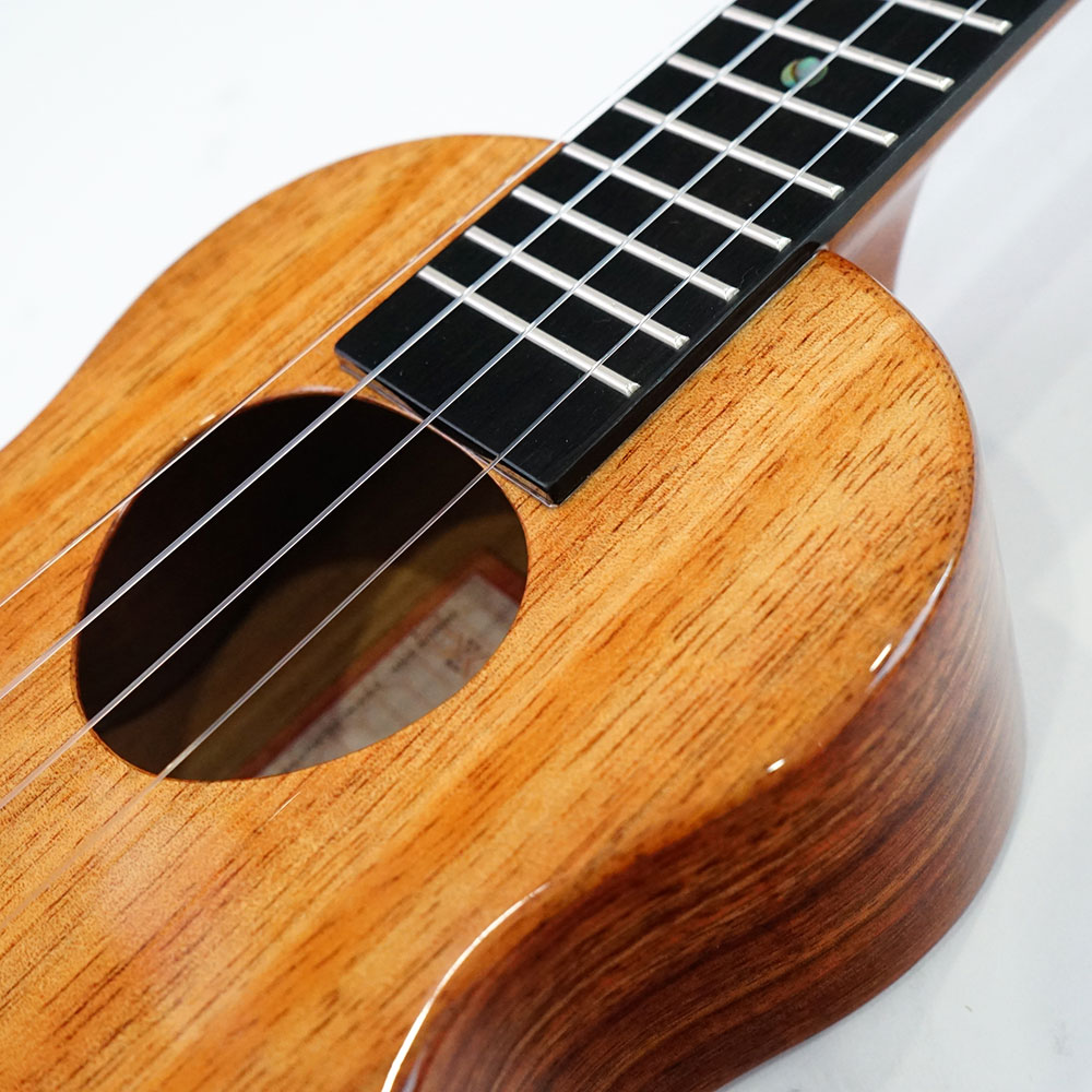 ハワイアンKOAの単板を惜しげもなく使ったグロス仕上げのスタンダードシリーズです。太く暖かく包み込むようなサウンドとトーンはまさにKoAlohaならではの魅力です。セミハードケース付。