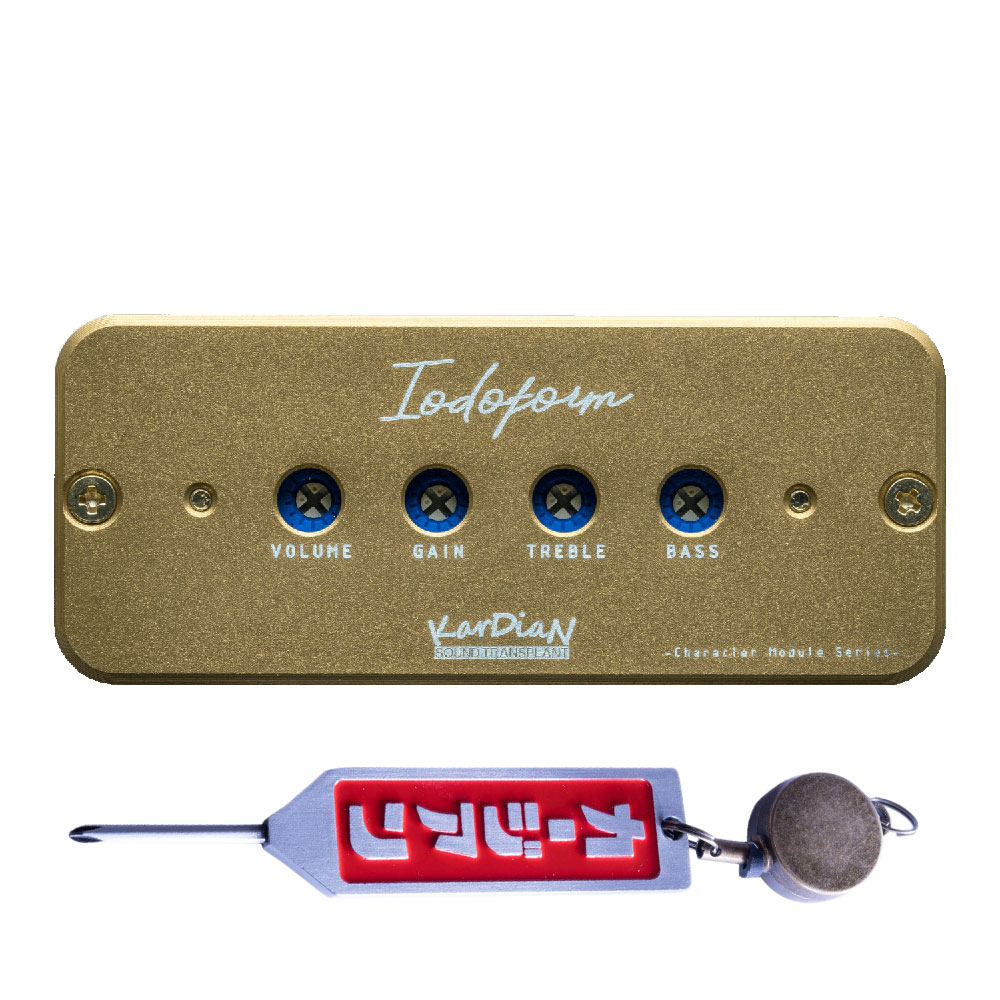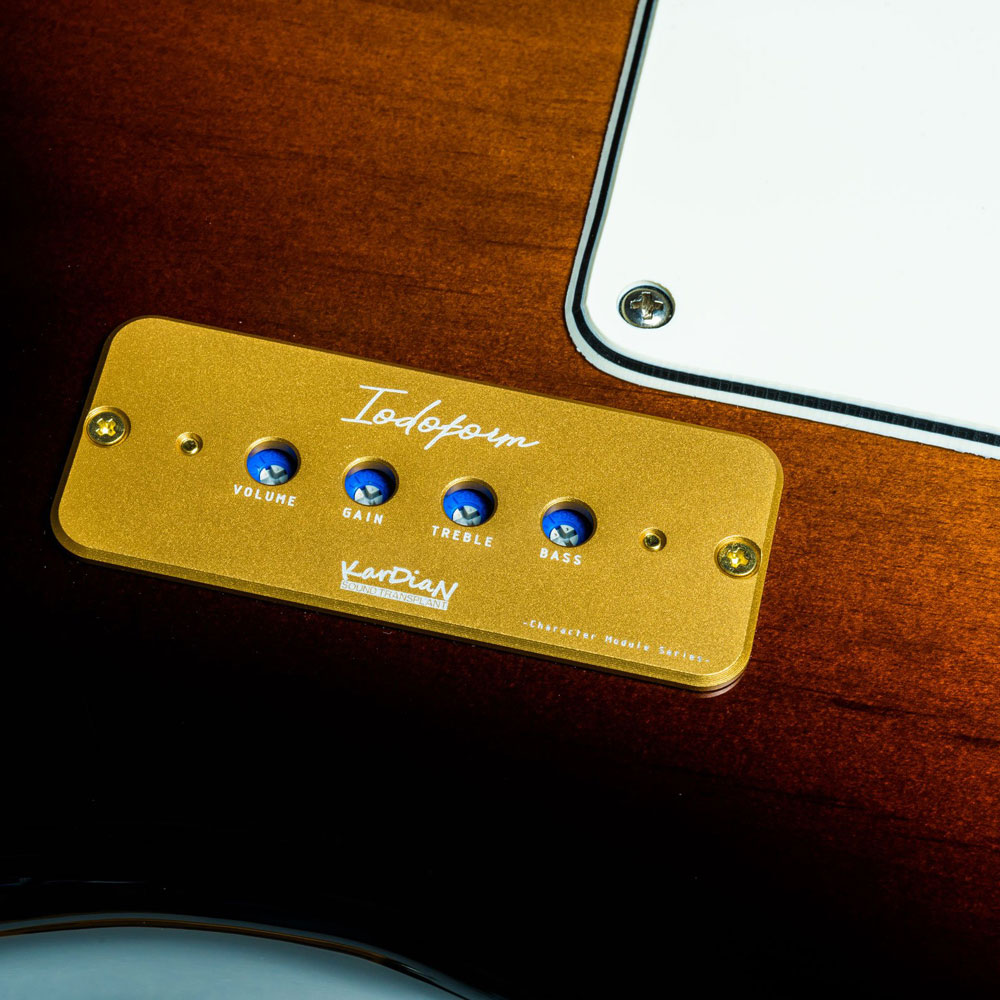 "Iodoform / ヨードホルム"はオンボードプリアンプとは異なります。プリアンプとして音の増幅、味付けをおこなうのではなく、ギター本来のサウンドやトーンをキャラクターレベルでアクティブに変化させるという視点から開発がスタートしました。