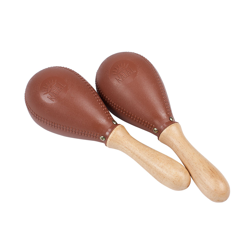 プラスチックシェルに握りやすい木製ハンドルを採用した明るく大きなサウンドが特長のプラスチックマラカスです。