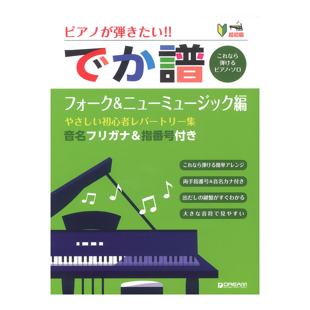 商品名 超初級 ピアノが弾きたい!! でか譜 フォーク&ニューミュージック編 音名フリガナ&指番号付きドリームミュージックファクトリー
