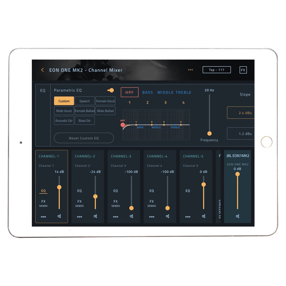 ■EON ONE MK2-Y3は多機能ミキサーを内蔵し、1台でPAシステムが完結できます。ファンタム電源の供給が可能なXLRやHi-Z入力用の標準フォーンなど様々な入力端子に加え、Bluetoothによるワイヤレス入力にも対応。スピーカー増設用のスルー出力も備えています。さらに、EQやリバーブ、ディレイはもちろん、ハウリングサプレッサーやダッキングなど、PAに必要なあらゆるエフェクトを内蔵。一台で全ての信号処理が行えるため外部調整機器は必要ありません。専用アプリも用意し、携帯端末からワイヤレス操作も可能です。端末充電用のUSB端子も2系統備えています。