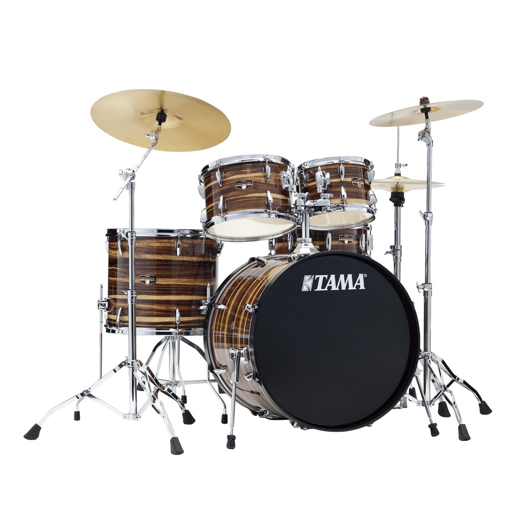 スタンダードなサイズの22“ 口径バスドラムセットに、 10” と 12“ 口径のタムタムをセットアップ。 12” と 13“ 口径のタムタムと比較してもチューニングが容易で、音程の高低さがより明瞭になることでフィルインでのフレーズに表情をつけやすい組み合わせです。シンバルはTAMA オリジナルのエントリー・グレードのブラスシンバルが付属。 16" クラッシュ、 20" ライド、 14" ハイハットをパッケージしています。これらのドラム、シンバルをセットアップするためのハードウェア スタンド 、ドラムペダル、そしてドラムスローンも含むオールインワンセットになっています。