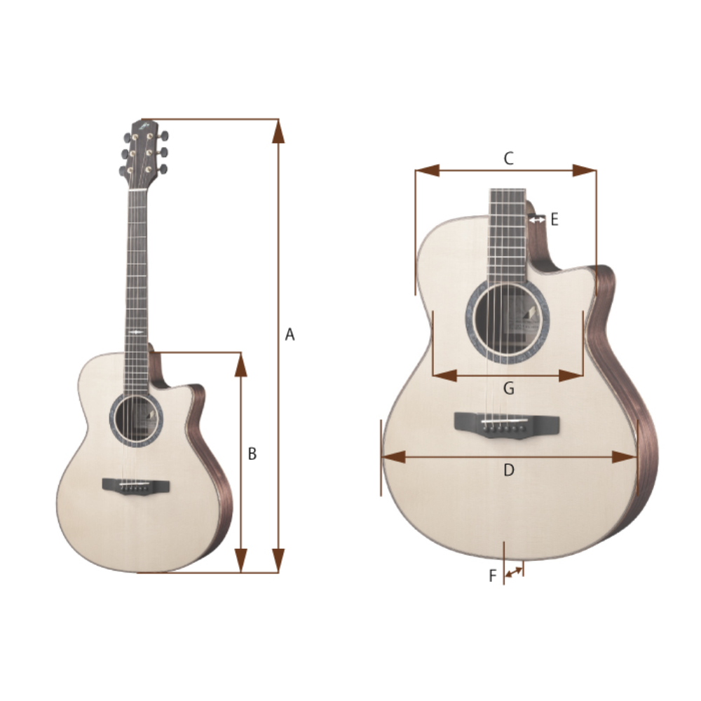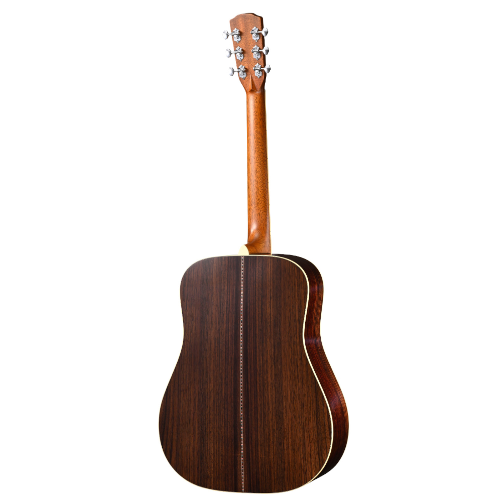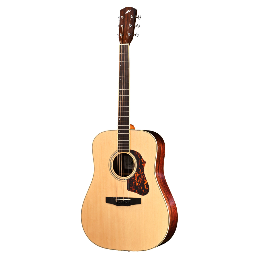 シトカ・スプルース単板の表甲にフォワードシフテッドXブレイシング、インディアン・ローズウッド単板の裏甲にはラダーブレイシングを採用し、シャープかつリッチな低音が特徴のサウンド。あわせて、ナットとサドルにグラフテック製TUSQを用いることで、モーリスギターの特徴ともいえる、きらびやかな音色と美しいサスティーンが魅力的なモデルとなっています。繊細なアルペジオから力強いストロークまで、ジャンルを選ばない表現力豊かなギターです。
