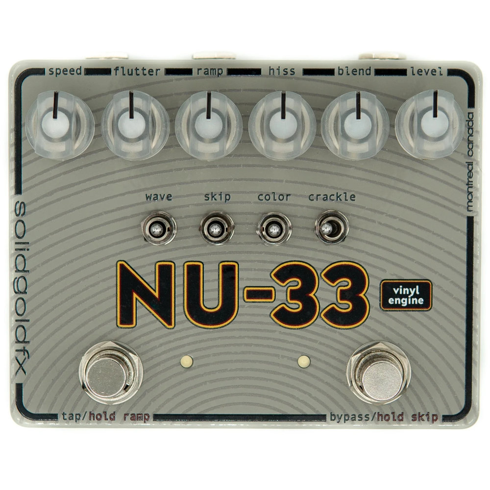 ギリシャ文字で空間周波数を意味する「NU」と、レコードの回転数「33」を組み合わせた名称が冠せられた、SolidGoldFXの愛してやまないLO-FIレコードモジュレーターペダル。