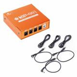 電圧をコントロール可能なボルテージアジャスト機能搭載のポートを3つ、無負荷時供給電圧を約9.8V(最適環境下において)のポートを6つの全9ポートを持つパワフルで高機能なパワーサプライです。グラウンドまで完全に個別にしたフルアイソレート回路です。Port1-6 は無負荷時供給電圧を約9.8V (最適環境下において)に、高負荷時でも9.4V を確保出来るよう設定。特にDistortionやOverdrive系のペダルで音に張りと厚みが生まれ、ブライトネスも上がる効果も期待できます。ボルテージアジャスト機能により6.5V〜18V 間を無段階で 任意の電圧に設定可能(Port7-9)。また、ボルテージインジケーターにより設定電圧を見える化。これらの機能により電圧が低めの電池をわざわざ用意して行っていたFUZZ への低電圧供給も持続可能になりました。小型のファンを搭載し、サイドから空気を取り込むことで冷却性能を飛躍的に向上させました。熱損失を最大限に減らして電力効率の上昇を実現(最大出力27W※)しました。