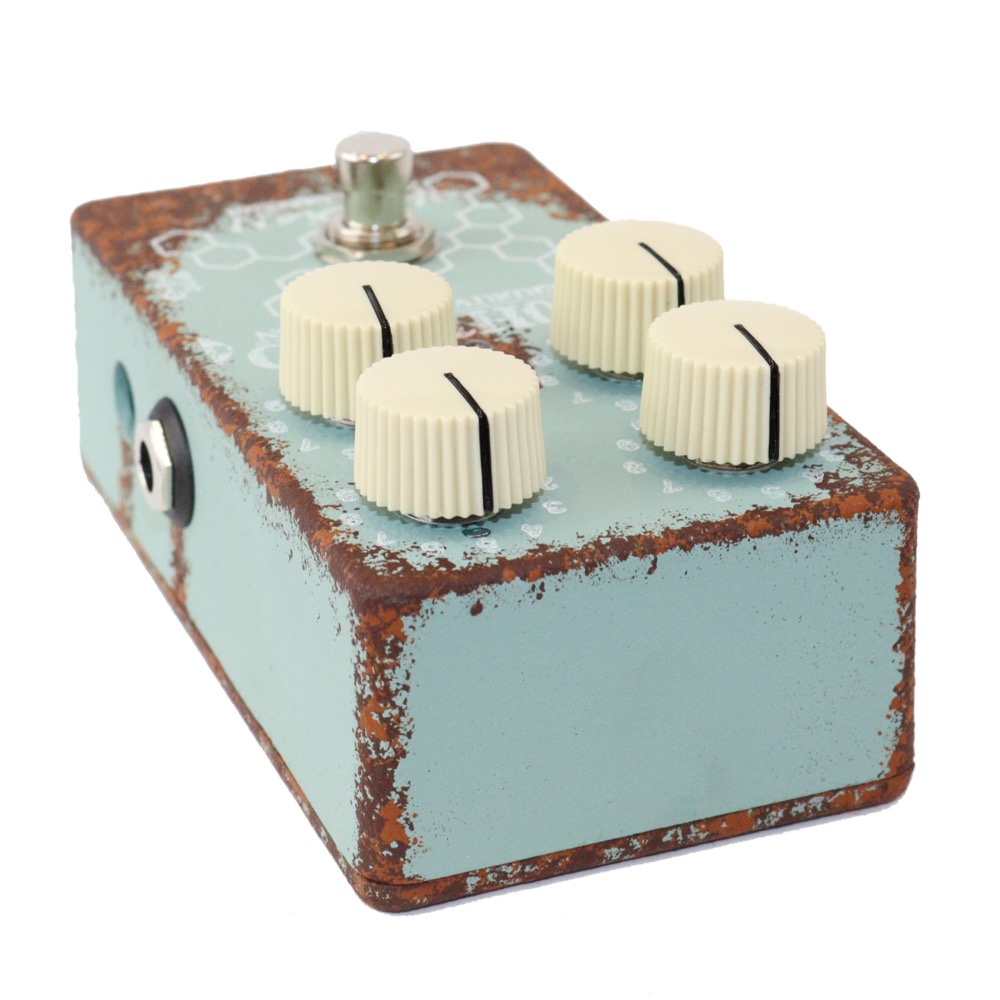 "Vintage Overdrive"の持つ豊かなミッドレンジとなめらかなピッキングレスポンス。その2つの特徴を残しながらも、より音抜けの良い現場的なEQバランスとワイルドなサウンドキャラクターを確立するため"C10H12N2O / セロトニン"が開発されました。特徴的なミッドレンジのキャラクターを持つペダルは通常1つのトーンノブを用いることにより、その魅力を残しながら調整することができます。私たちはこの独特のキャラクターを残したまま現場に即したトーンスタックを実装するという、相反した2つのポイントを共存させる回路開発をおこないました。魔法のミッドレンジを活かした2EQのトーンスタックが生み出す音色は、まったく新しいオーバードライブサウンドです。