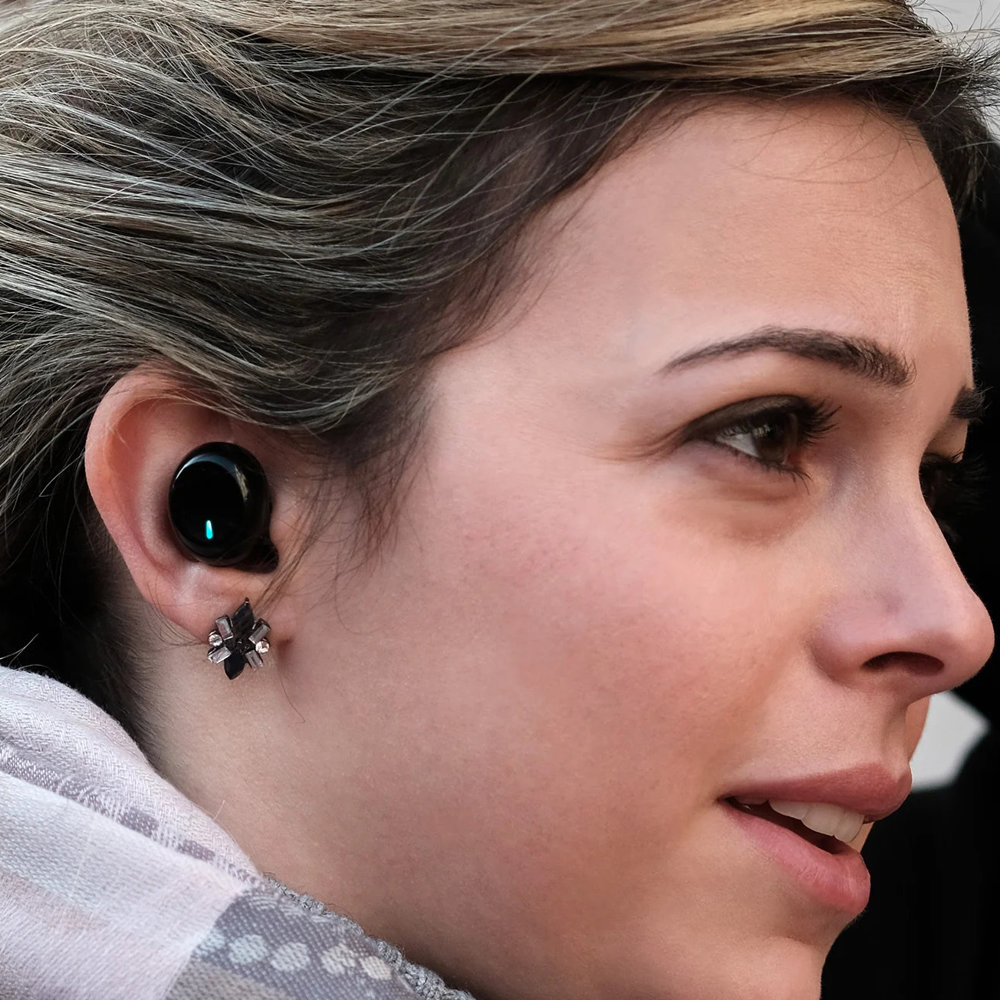 筐体サイズは僅か18mm(h) x 22mm(w) x10mm(d)。小さな耳の方にも大きくはみ出すことなく、すっぽりとフィットします。また、充電ケースも3mm(h)x62mm(w) x 28mm(d) で非常にコンパクト、ジーンズのポケットにも違和感なく収まります。