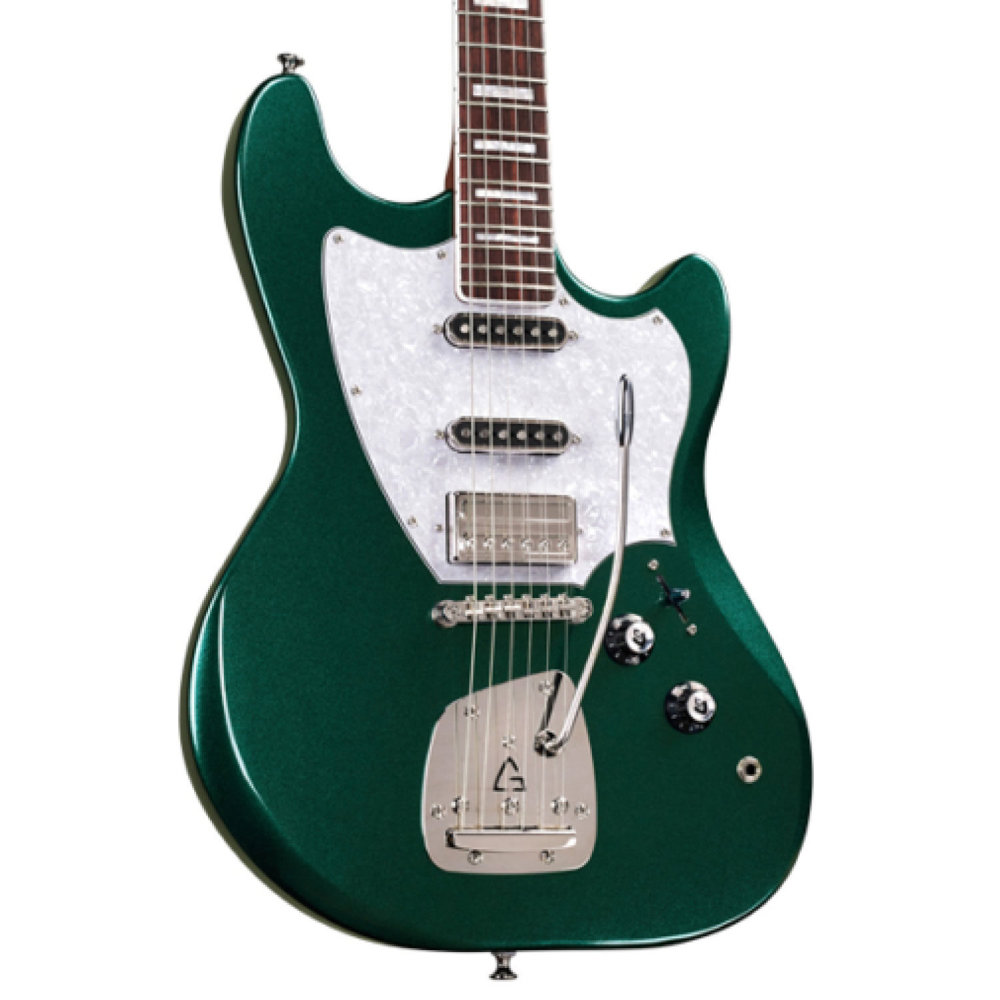 本モデルのために新たに開発された「Guild Floating Vibrato Tailpiece(GFVT)」は、ゆったりとした心地よいビブラートエフェクトを実現。ナイロン製のインサートとアクセスしやすい位置にテンションスクリューを搭載し、バーテンションの自在なコントロールが可能。ヴィンテージな外観を演出するギルドのDNAを受け継ぐ「G」のエンボス加工が施されています。