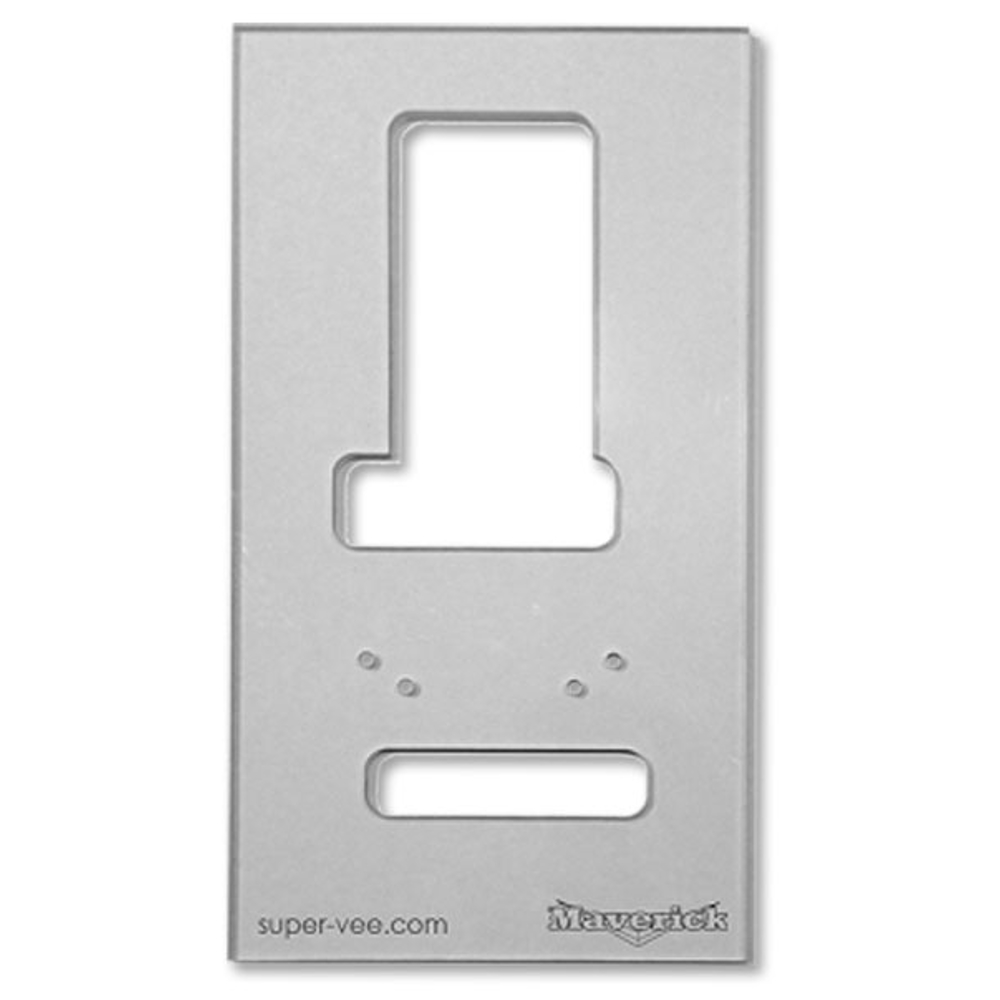 Maverickトレモロを取り付ける為の、ボディ加工用アクリル・テンプレート。お持ちのテレキャスターボディに、加工図面を貼り付け、このテンプレートをセットし、ハンディー・ルーターで加工します。