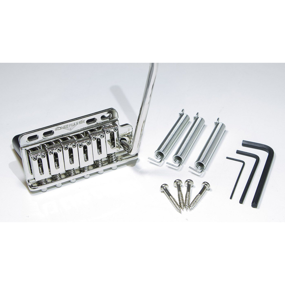 ●ギターへの交換・取付は、シンクロトレモロの6本のビスを外し、「BladeRunner 6-Screw」トレモロに置き換え、4本の木ネジで固定するだけです。フローティングして取り付ける必要は無く、「BladeRunner 6-Screw」をボディにしっかり「固定」するだけです。