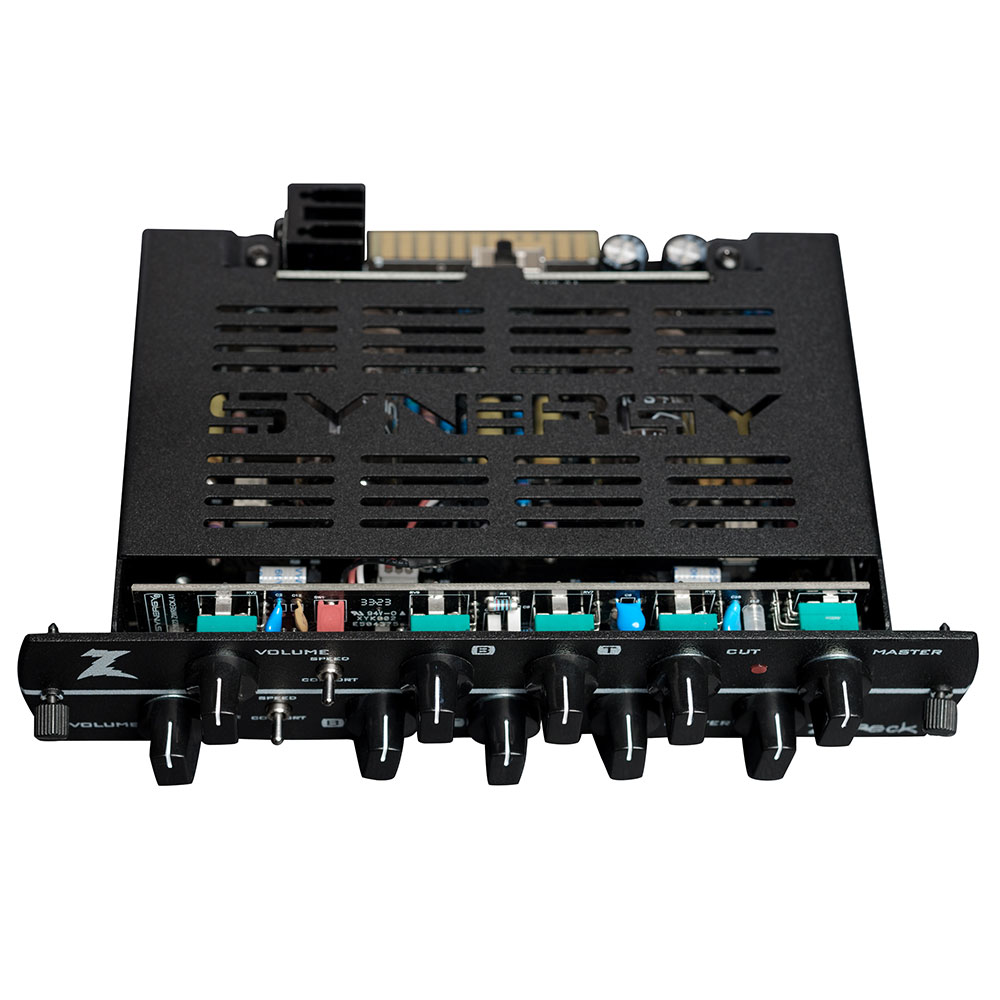 SYNERGY Z WRECKモジュールには、SYNERGYモジュールでは初の試みとなる「0W(ゼロ・ワット) パワーアンプ」を内蔵し、真空管アンプ同様にフェイズ・インバーターとオンボード・トランスを搭載しています。これによりオリジナルのZ WRECKのドライブサウンドがパワーアンプのドライブによって得られていた部分まで完全に再現し、Z WRECKのもつサウンド・マジックをモジュール化することに成功しました。