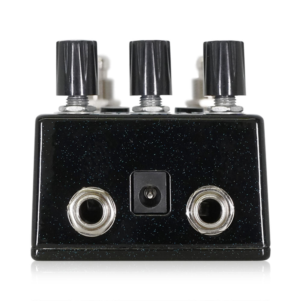 ・MULTI:モードにより動作が異なります。SETモードでは長押しするとキャリア周波数をスウィープします。ENVモードでは長押しするとエンベロープをフリーズします。LFOモードではタップテンポ入力または長押しでLFOスピードをゆっくりと下げ、離すと元に戻します。バイパス中に長押し(SETモード)するとキャリア周波数をスウィープします。