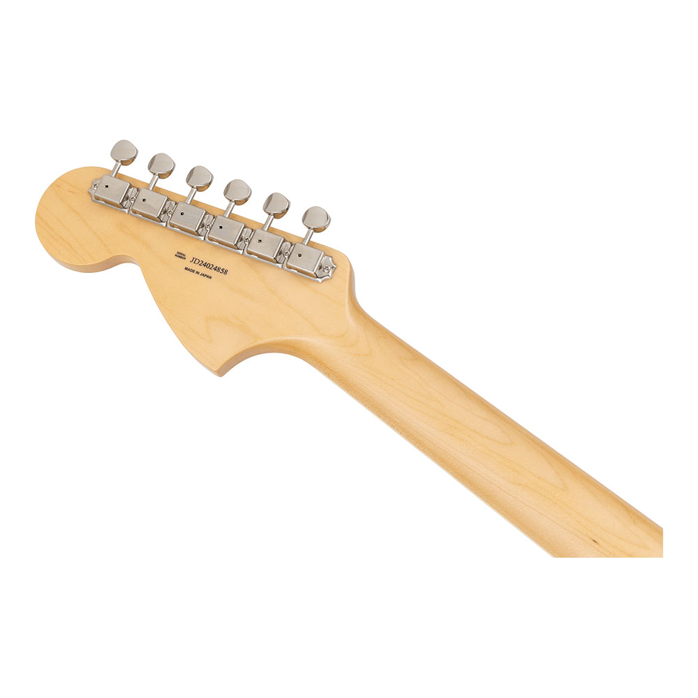 Made in Japan Traditional Late '60s Jazzmasterはグロスフィニッシュのバスウッドボディに、ヴィンテージスタイルの21フレットを採用し、9.5インチラジアスの”U” シェイプメイプルネックがTraditionalシリーズならではのクラシカルな演奏製を提供します。フローティングトレモロテイルピース付きの6サドル式ヴィンテージスタイルブリッジ、そしてTraditionalシリーズのために選定されたオリジナルピックアップはリアルで音楽的なヴィンテージトーンを奏でます。細めに設計されたナット幅は日本のプレイヤ ーにも弾きやすい仕様となっています。 本製品は、60年代の後期から採用されていた、ネックにバインディングが施されブロックのポジションインレイを採用した製品のリイシューです。 堅実なギタークラフトマンシップと、プレイヤーのニーズに柔軟に対応する答えが、本シリーズに反映されています。