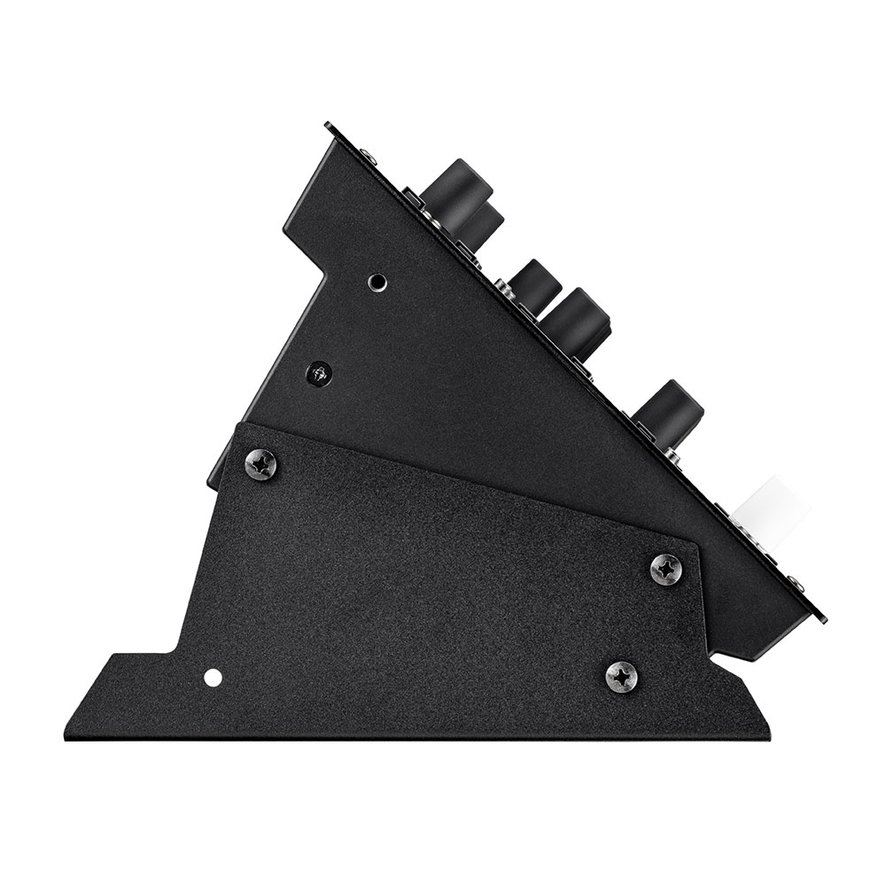 multi/poly moduleは、デスクトップとラックマウントの両方で使用できる設計になっています。フロント・パネルは19インチラックにマウントできるサイズに再設計され、背面の端子部分を凹ませた構造とすることで、ケーブルを挿すときにラックの上の段を空ける必要がないよう考慮されています。またデスクトップで使用する際は、両サイドのラックマウント・アダプターの取り付け方を変えることでパネルをより立てた角度に設定することができ、椅子に座っての操作も快適です。