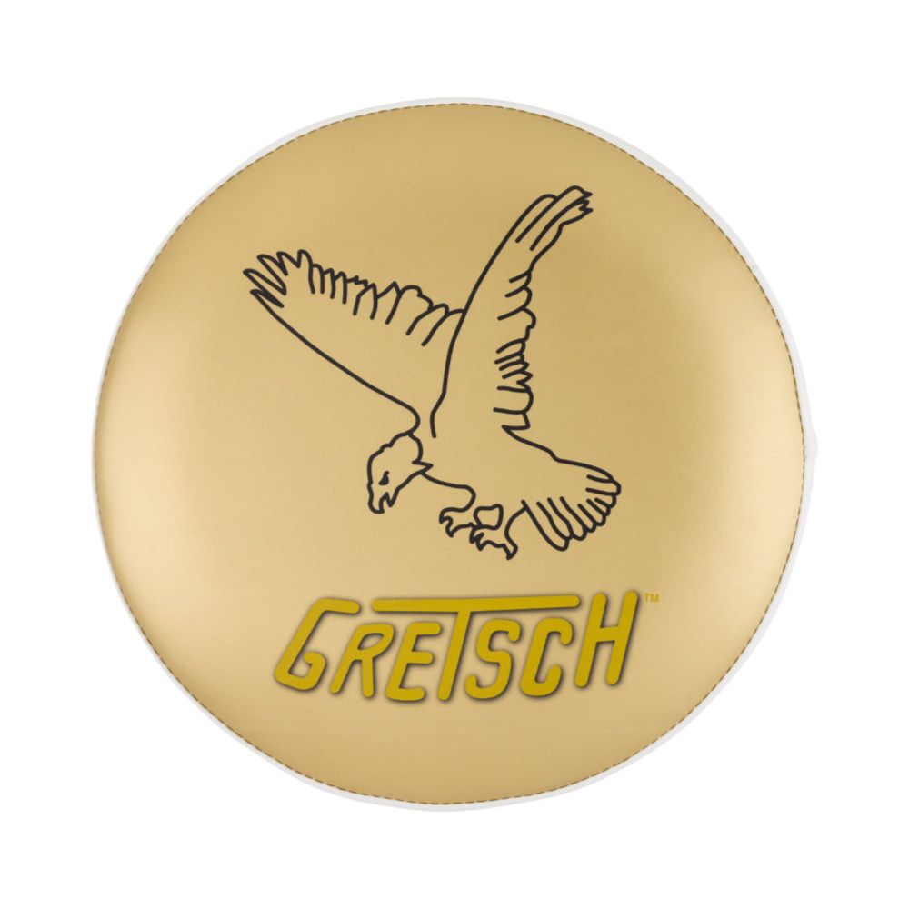 Gretsch White Falcon Barstoolは、Gretsch Falconギターのアイコニックなピックガードロゴをあしらった大胆で上品なゴールドのシートトップと、目を惹くホワイトのサイドが特徴で、スタイリッシュにギターを弾いたり、ドリンクを楽しむのに最適です。