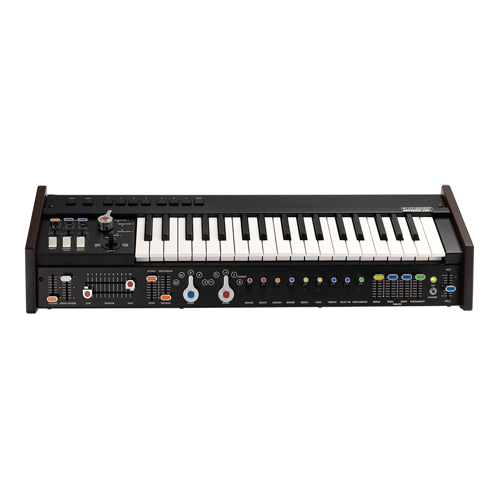 オルガンの二段鍵盤の上に置かれる状況を想定し、使いやすいよう鍵盤下に一列に配置された操作子は時代が変わっても直感的でわかりやすく、そのルックスは他にはない個性的なものとなっています。