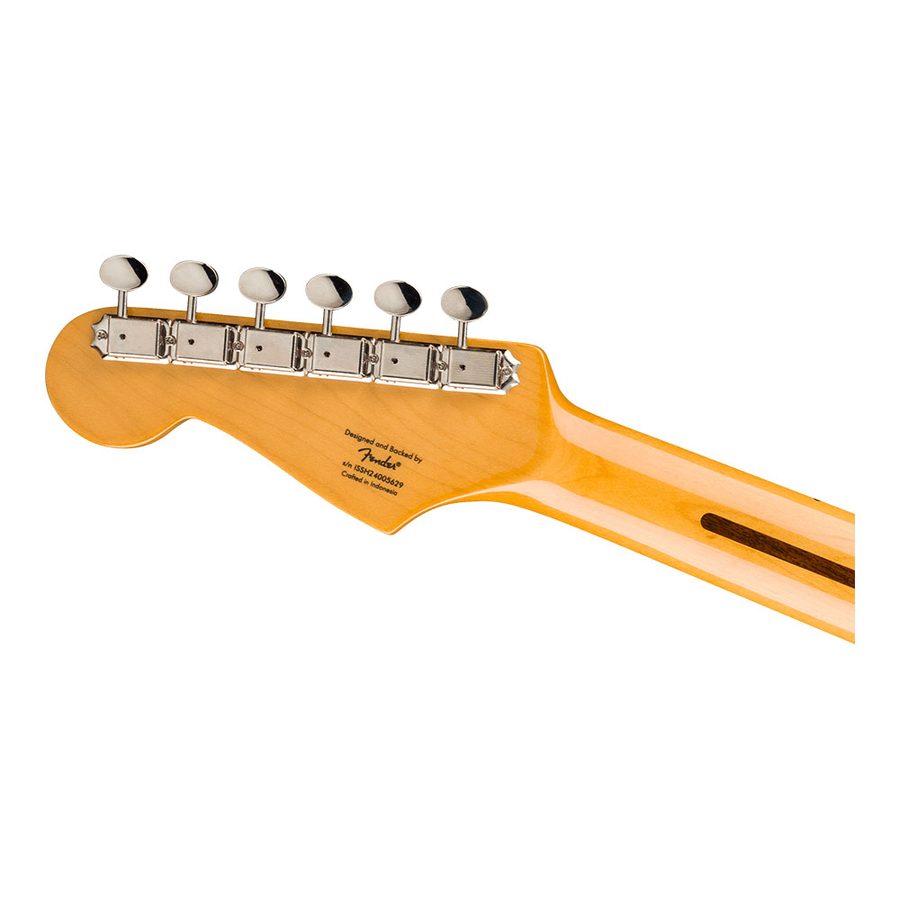 1950年代のストラトキャスター黎明期を称えるClassic Vibe ‘50s Stratocaster HTは、Fenderデザインのアルニコシングルコイルピックアップを3基搭載し、極上のトーンを生み出します。1955年に初めて導入されたハードテイルブリッジ(HT)は、安定したイントネーションを提供し、ストリングスルーボディ構造によって最適なボディレゾナンスを実現します。