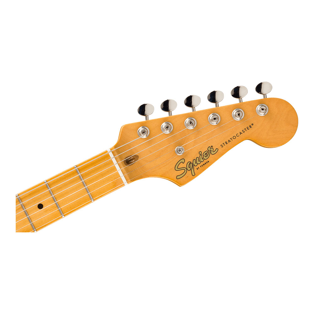 往年の名器の風格を持つSquierモデルは、1950年代風のヘッドストックデカール、重厚感のあるニッケルメッキハードウェア、そしてクラシックな雰囲気を醸し出すヴィンテージティント仕上げのグロスネックも特徴です。