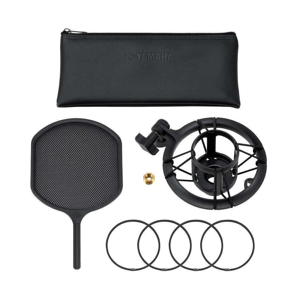 『YCM705』は、マイクスタンドから伝わる振動を低減するショックマウントや、音質を損なうことなくボーカル録音時に発生するノイズを防ぐポップフィルターなど充実したアクセサリーを付属しています。