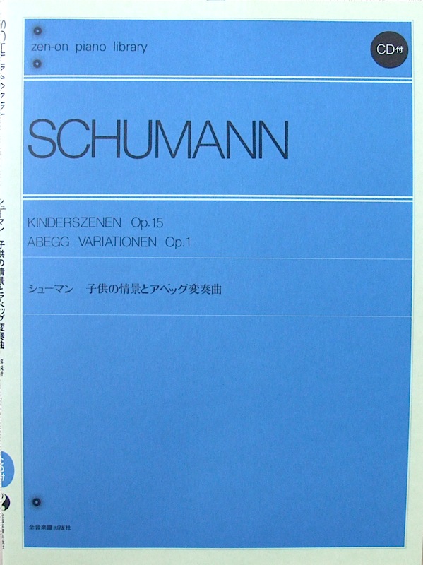 長い間ピアノレッスンで多くの方にお使いいただいております「シューマン:子供の情景とアベッグ変奏曲」に、模範演奏のCDを付けました。これからは楽譜と音がいつでも手軽に安価で入手できるようになりました。ぜひ、レッスンにお役立て下さい。