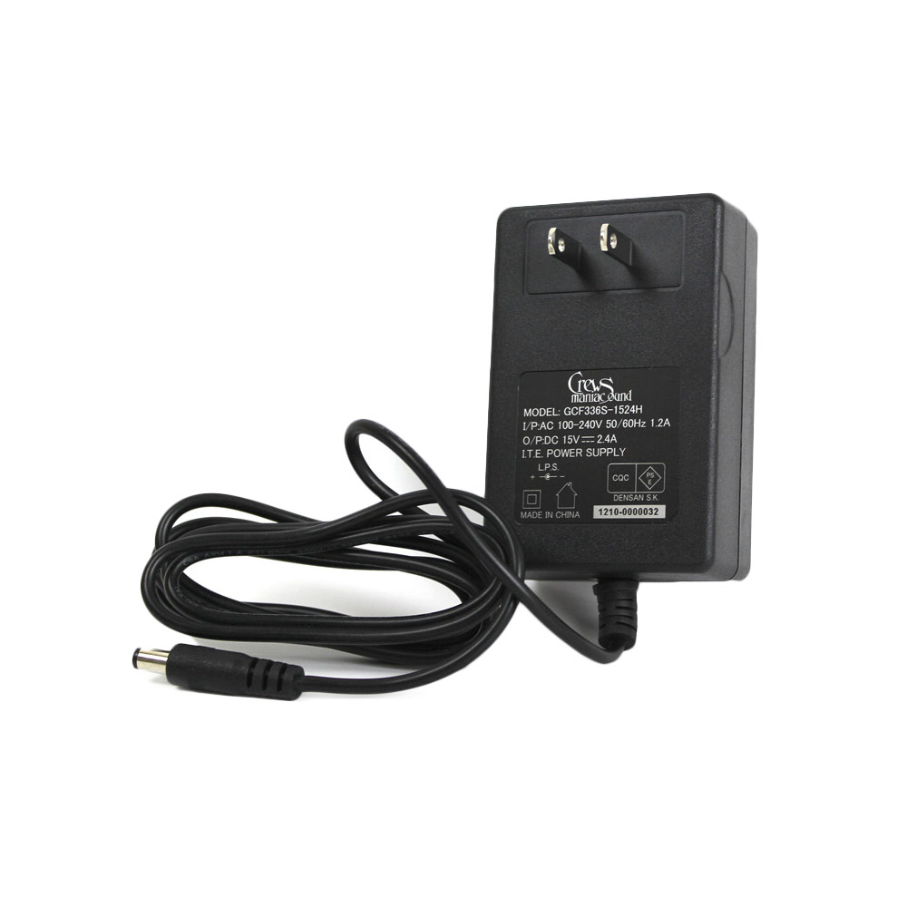 100V-240V入力対応のユニバーサルタイプ。15V 2Aモデルのアダプターです。