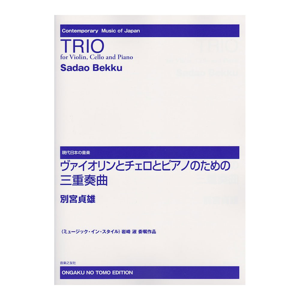 商品名 ミュージック・イン・スタイル 岩崎 淑 委嘱作品 ヴァイオリンとチェロとピアノのための三重奏曲 音楽之友社