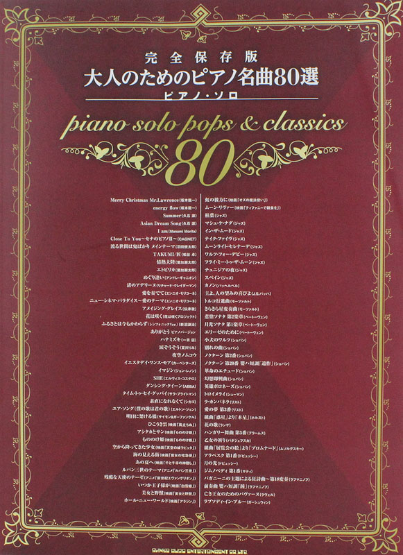 商品名 ピアノソロ 大人のためのピアノ名曲80選 シンコーミュージック