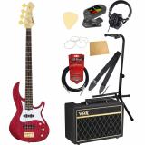 エレキベースにVOXアンプ「VOX Pathfinder Bass 10」、ケーブル、チューナー、ストラップ、換え弦、スタンド、ピック、クロス、ヘッドホンをお付けした10点セットです。