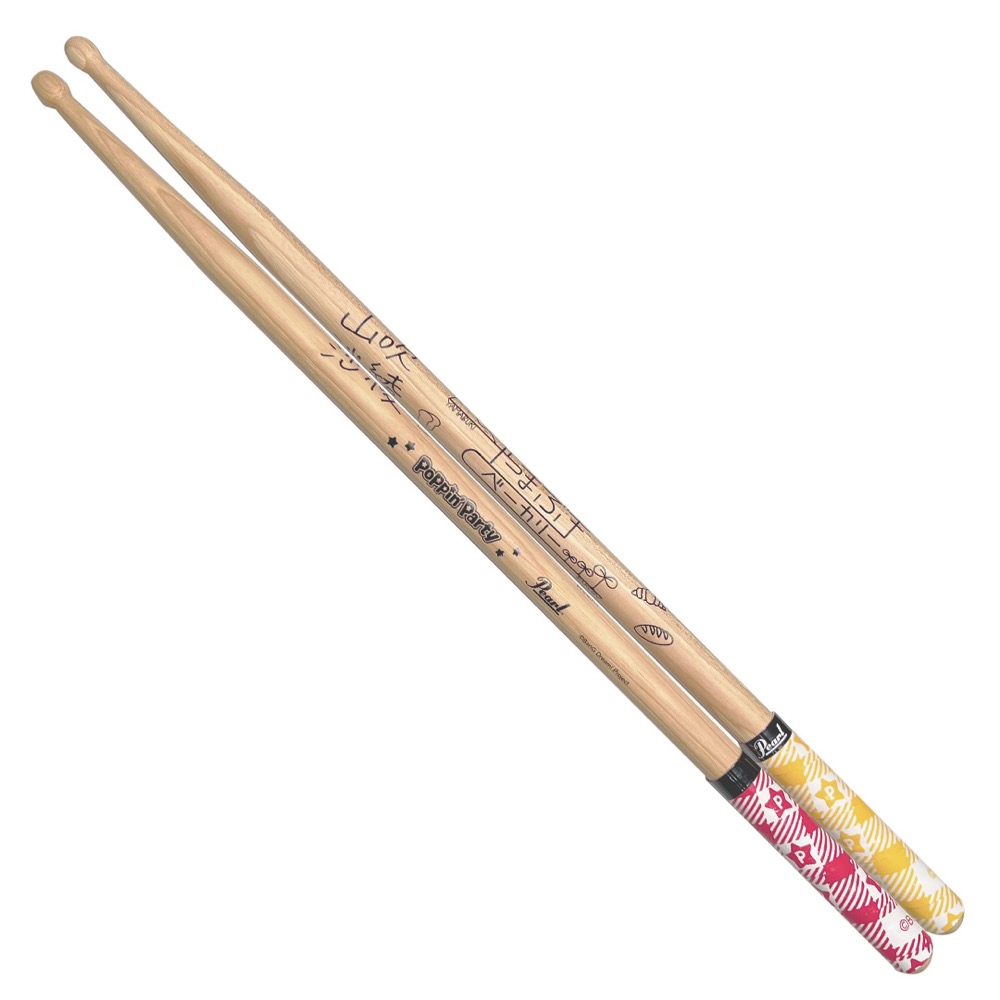 Pearlの山吹沙綾(Poppin’ Party)Ver.3 モデル ドラムスティック 「188H/SAYA」に山吹沙綾(Poppin’ Party)Ver.3 モデル タイトグリップ「TG-1 #SAYA 」をお付けしたセットです。