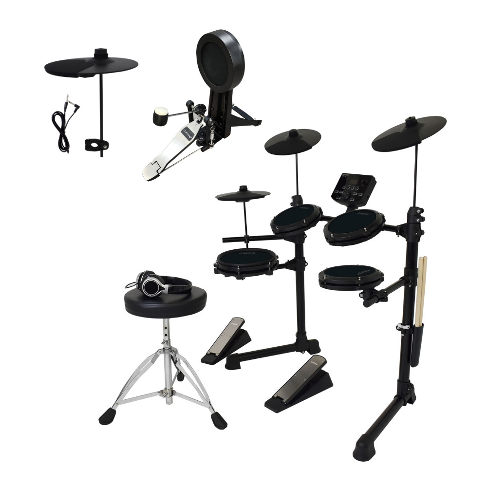 ONETONE ワントーン 電子ドラム OTDD-100 BK パッド式バスドラム シンバル追加(3シンバル)セット ドラム椅子 スティック ヘッドホン付き