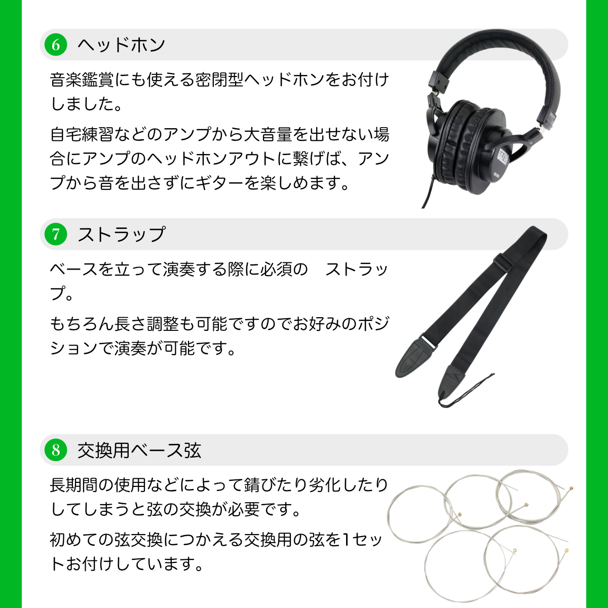 ※ベース本体、アンプ以外の小物類に関しては、用途は同じですが掲載画像の製品と異なる場合がございます。あらかじめご了承ください。